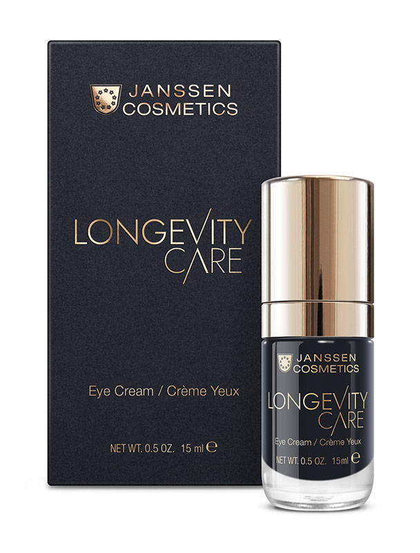 Posilující oční krém na podporu dlouhověkosti, obsahuje clotho, které podporuje obnovu buněk a stimuluje jejich dlouhověkost aktivací proteinu. Zajistí rovnoměrnější tón pleti a zvýšený jas. Ašvaganda extrakt z kořene, chrání protein mládí CLOTHO, posiluje kožní bariéru, zjemňuje texturu pleti a zvýrazňuje její přirozený jas, resveratrol, posiluje přirozenou obranyschopnost pleti a zabraňuje přehnaným reakcím na stres, např. UV záření. Extrakt z mořského mikroorganismu E. crustaceum, posiluje kapiláry, redukuje tmavé kruhy a vyhlazuje vrásky kolem očí, vytváří zářivější a mladistvější vzhled. Protěžový extrakt, zpevňuje pleť kolem očí, redukuje vrásky, vitamín A palmitát podporuje regeneraci. Sacharidový izomerát, hyaluronové kyseliny, krátko, dlouho řetězcová a zasíťovaná udržují vydatnou vlhkost, skvalan zlepšuje TEWL